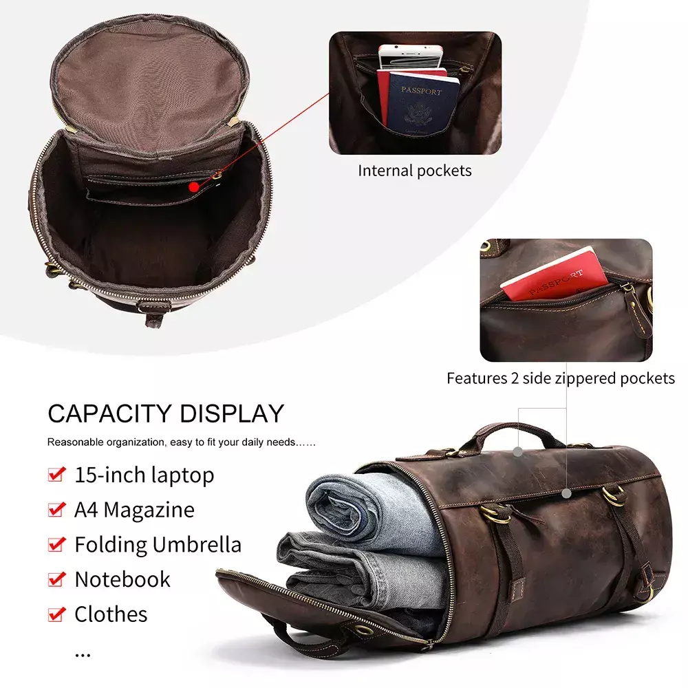 El Bolso "El Barril" es un símbolo de capacidad y solidez inquebrantable. Confeccionado en cuero genuino color negro, su diseño multifuncional está inspirado en la robustez que requiere almacenar lo esencial para el viaje de la vida. Es lo suficientemente amplio para funcionar como maletín de trabajo, llevar un notebook o ser su compañero en viajes cortos de fin de semana. El cuero de este bolso no solo resistirá la prueba del tiempo, sino que, como un buen barril, ganará carácter y valor con cada historia que contenga. Es el legado que se lleva puesto.