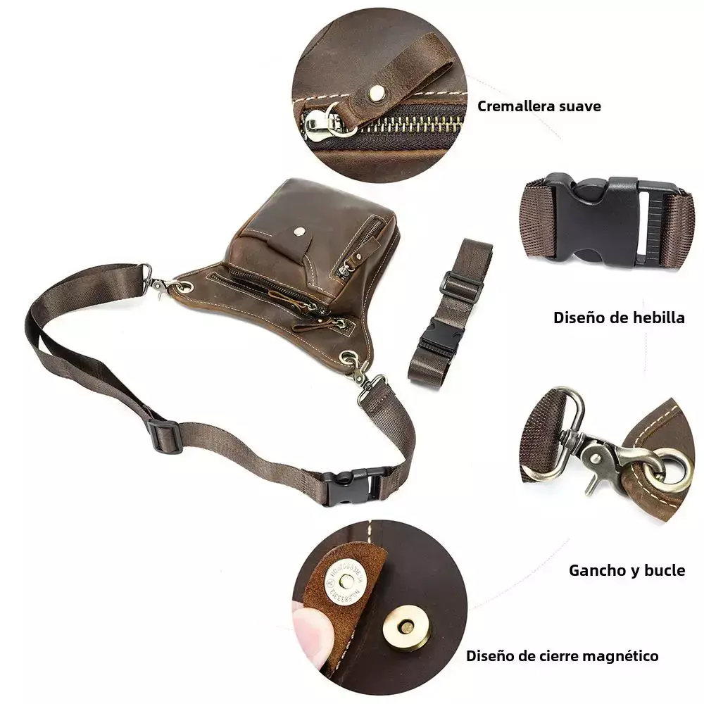 La Muslera "El Explorador" está diseñada para la aventura urbana y la libertad de movimiento. Confeccionada en cuero genuino color café, esta pieza funcional se asegura cómodamente a la pierna, manteniendo sus esenciales (teléfono, billetera, llaves) seguros y accesibles. Es el accesorio ideal para el hombre que necesita las manos libres para conducir, trabajar o explorar, sin sacrificar la calidad. Su diseño robusto y su material de alta calidad la convierten en un objeto de legado que mejora con cada uso y que, al igual que sus historias, perdura en el tiempo.